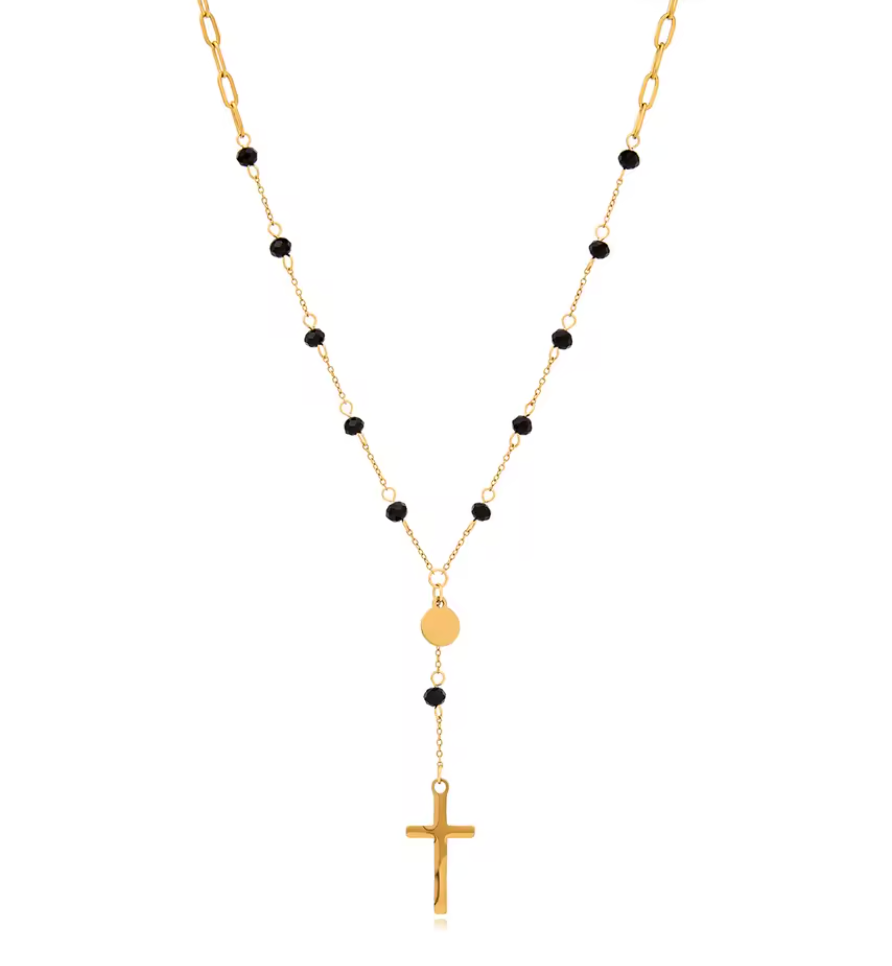 18K Gold Plated This piece uses durable stainless steel that's tarnish/water resistant.