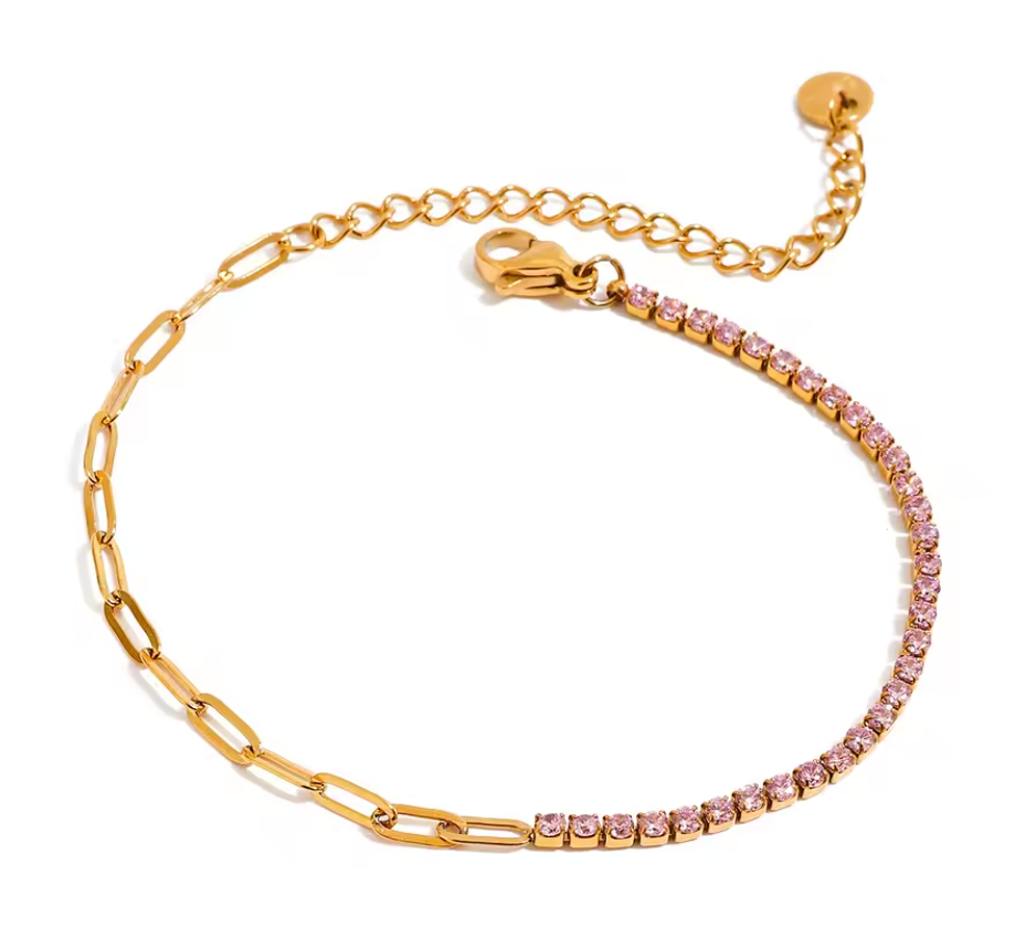 18K Gold Plated This piece uses durable stainless steel that's tarnish/water resistant.